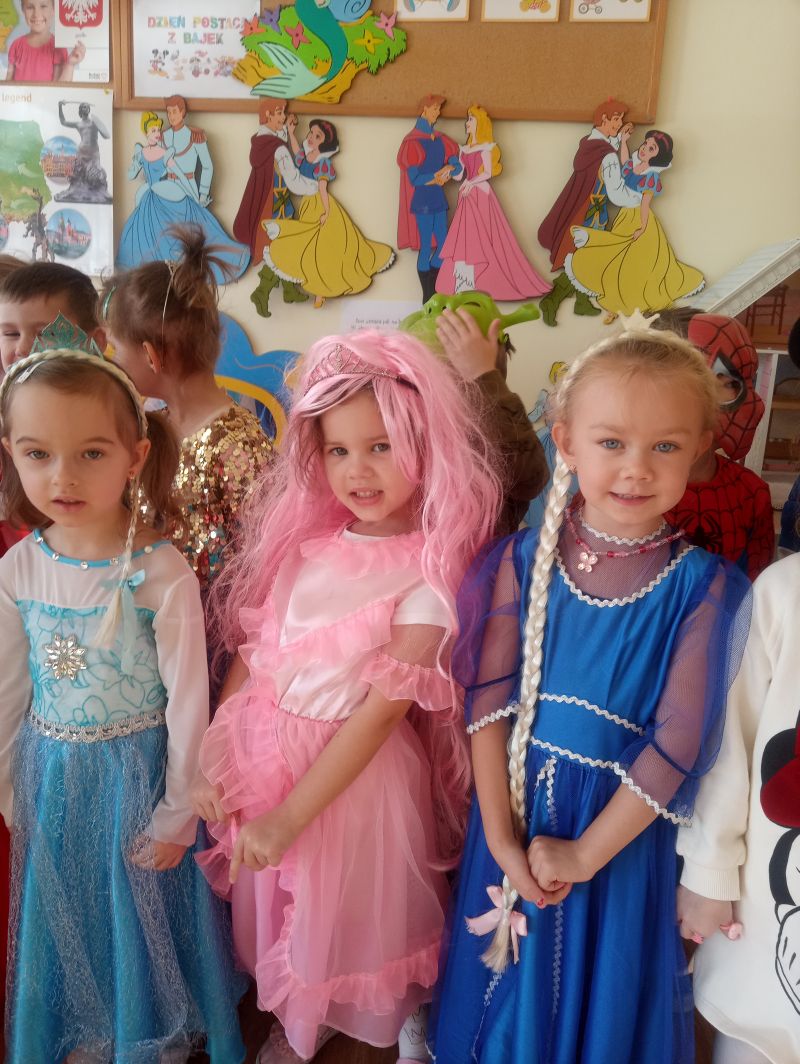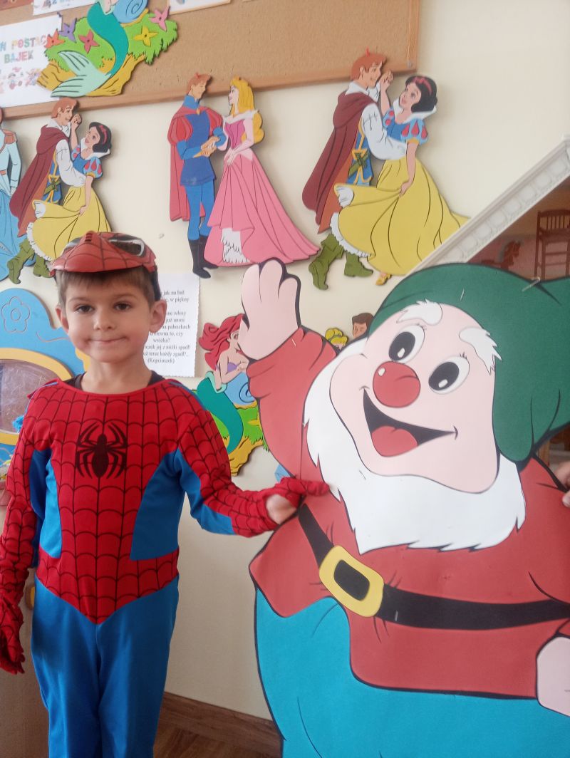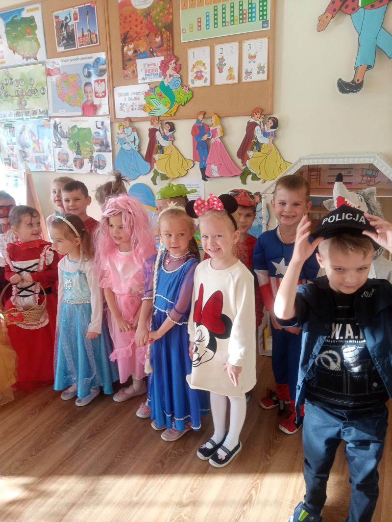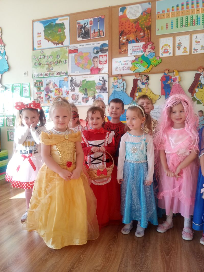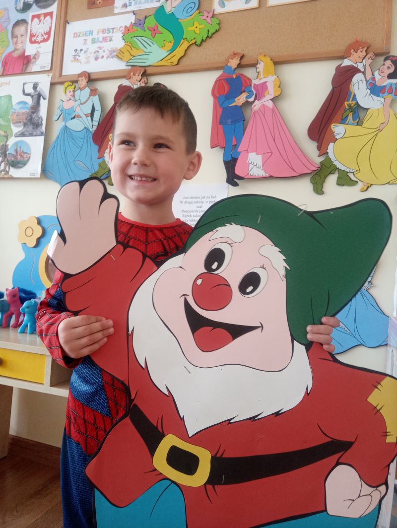 Przedszkolaki z grupy ,,Biedronek” bardzo radośnie obchodziły Dzień Postaci z Bajek. Tego dnia w naszej grupie było bajkowo i kolorowo, każdy przyszedł do przedszkola przebrany za ulubioną postać bajkową. Podczas zajęć wykonywaliśmy różnorodne zadania związane z bajkami. Dzieci rozwiązywały zagadki wykazując się bardzo dobrą znajomością literatury dziecięcej, rozpoznawały bajkowe postacie, rekwizyty i tytuły znanych baśni i bajek oraz kolorowały wybranych baśniowych bohaterów. Na uwagę zasługiwały improwizacje ruchowe przy muzyce…oczywiście o tematyce bajkowej oraz prezentacja dziecięcych bajkowych przebrań. Dzieci bardzo dobrze znają baśnie i świetnie radziły sobie z zadaniami. Dzień ten dostarczył nam dużo radości oraz wiele pozytywnych emocji… Dzień Postaci z Bajek jest również doskonałą okazją do rozwijania zainteresowań czytelniczych wśród dzieci. Wartościowe książki kształcą odpowiednie postawy moralne, rozwijają dziecięcą fantazję, pamięć, bogacą słownictwo. Warto wybierać więc bajki, gdzie dobro zwycięża….i są szczęśliwe zakończenia, co dla dzieci w wieku przedszkolnym jest bardzo istotne…