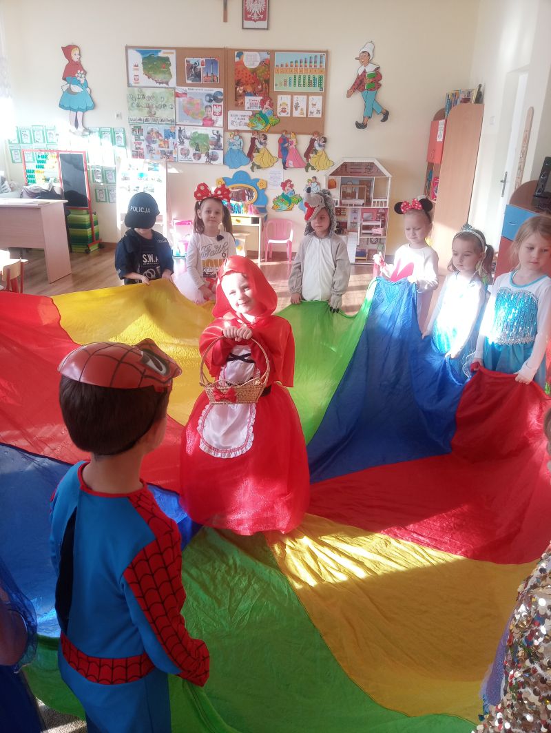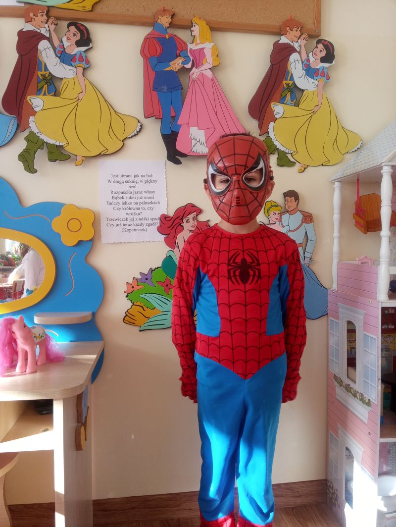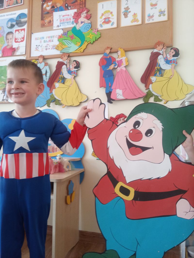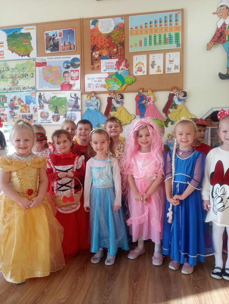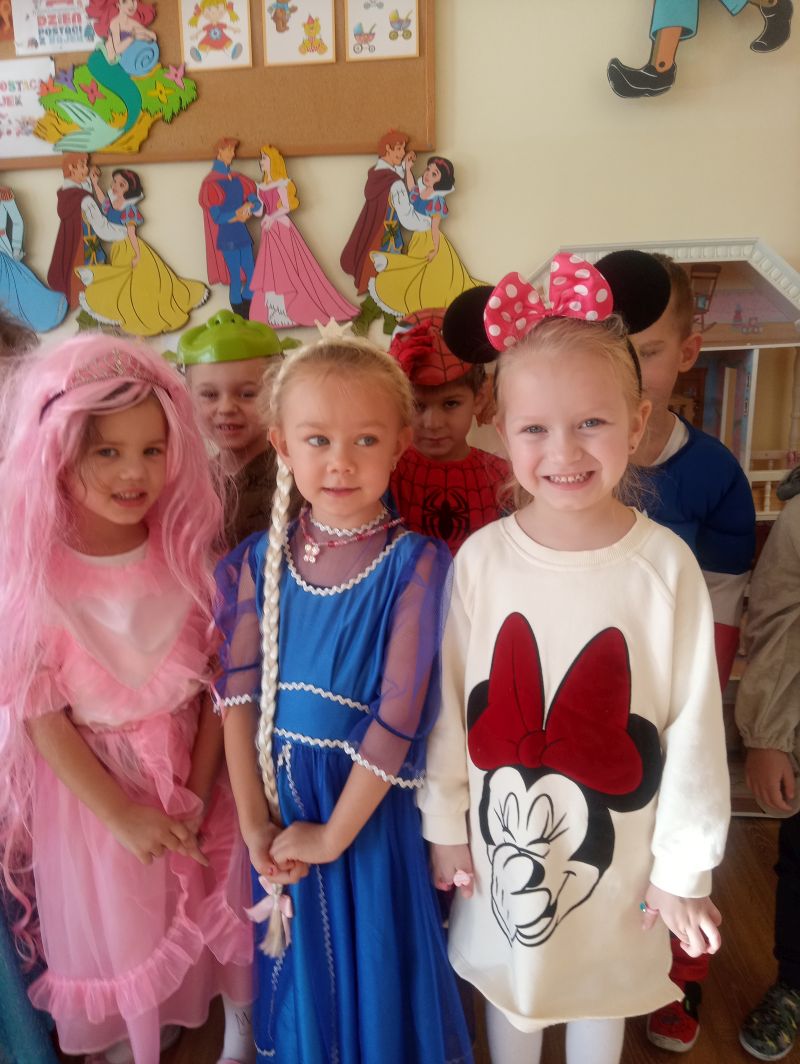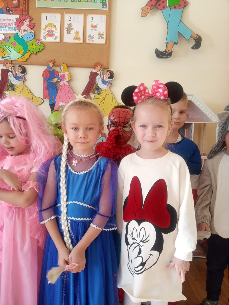 Przedszkolaki z grupy ,,Biedronek” bardzo radośnie obchodziły Dzień Postaci z Bajek. Tego dnia w naszej grupie było bajkowo i kolorowo, każdy przyszedł do przedszkola przebrany za ulubioną postać bajkową. Podczas zajęć wykonywaliśmy różnorodne zadania związane z bajkami. Dzieci rozwiązywały zagadki wykazując się bardzo dobrą znajomością literatury dziecięcej, rozpoznawały bajkowe postacie, rekwizyty i tytuły znanych baśni i bajek oraz kolorowały wybranych baśniowych bohaterów. Na uwagę zasługiwały improwizacje ruchowe przy muzyce…oczywiście o tematyce bajkowej oraz prezentacja dziecięcych bajkowych przebrań. Dzieci bardzo dobrze znają baśnie i świetnie radziły sobie z zadaniami. Dzień ten dostarczył nam dużo radości oraz wiele pozytywnych emocji… Dzień Postaci z Bajek jest również doskonałą okazją do rozwijania zainteresowań czytelniczych wśród dzieci. Wartościowe książki kształcą odpowiednie postawy moralne, rozwijają dziecięcą fantazję, pamięć, bogacą słownictwo. Warto wybierać więc bajki, gdzie dobro zwycięża….i są szczęśliwe zakończenia, co dla dzieci w wieku przedszkolnym jest bardzo istotne…