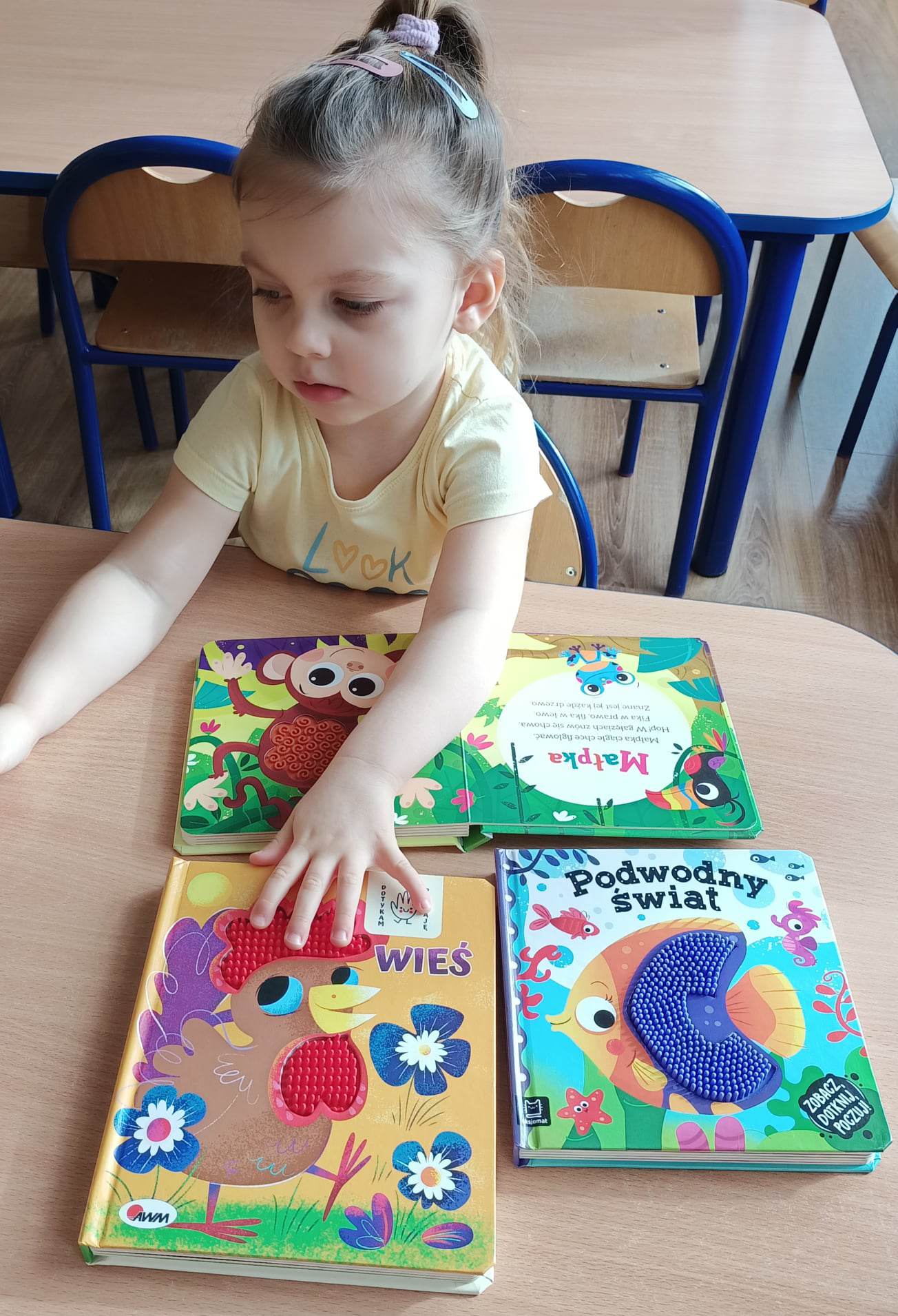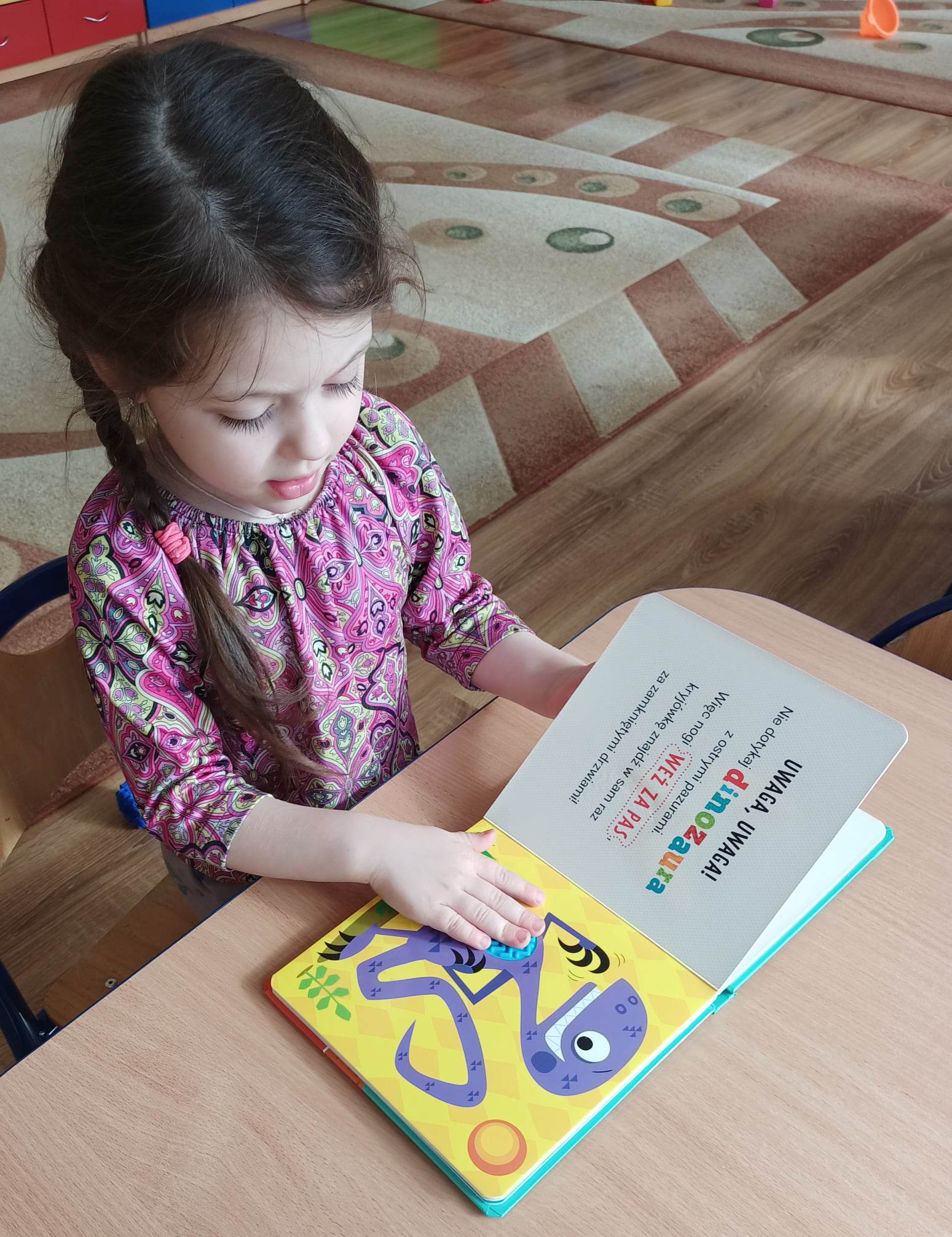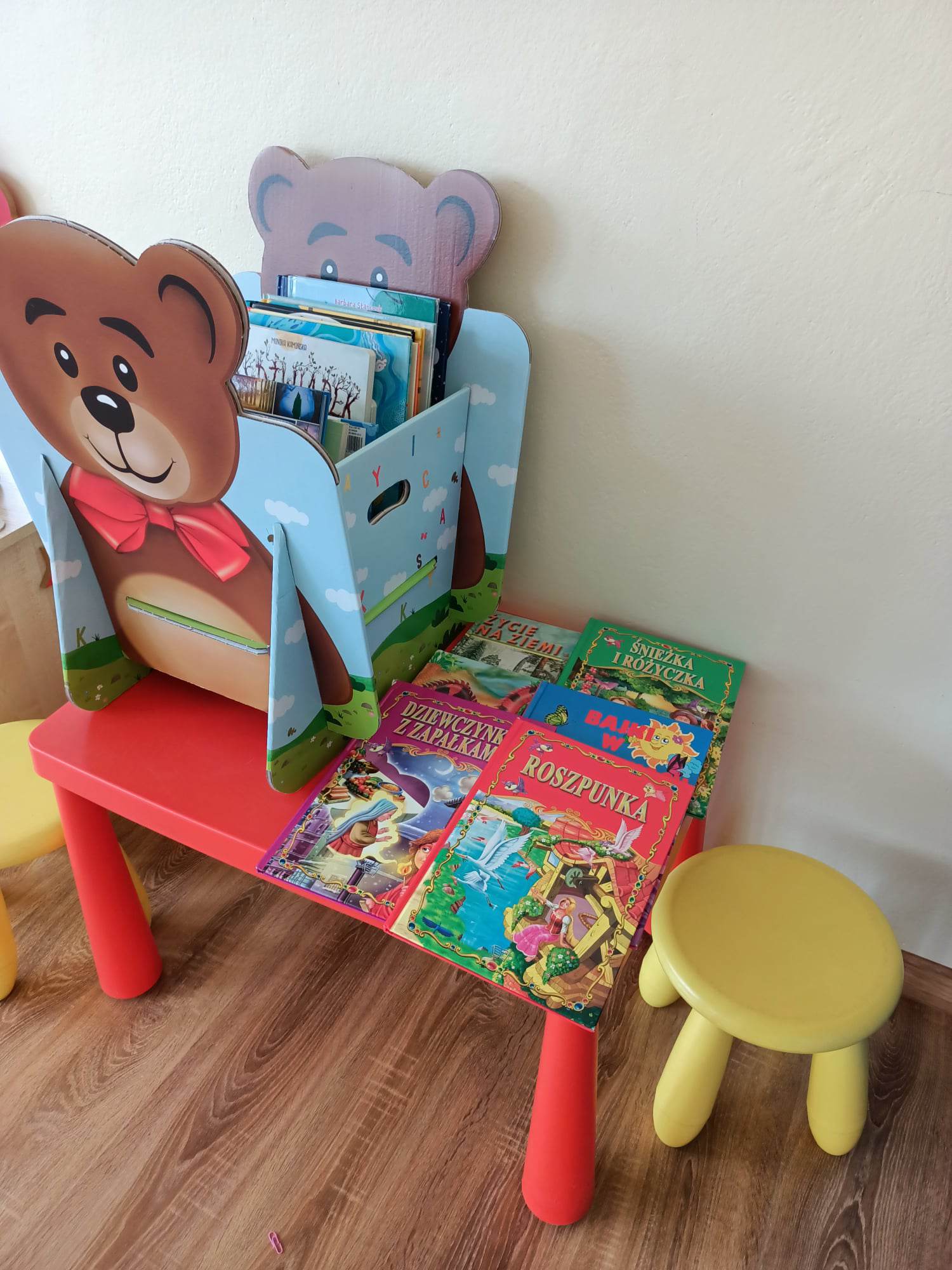 - Budzenie zaciekawienia książką przez ciekawe zabawy literacko-teatralne, piosenki, twórczość plastyczną, wyeksponowany kącik książek w sali przedszkolnej.