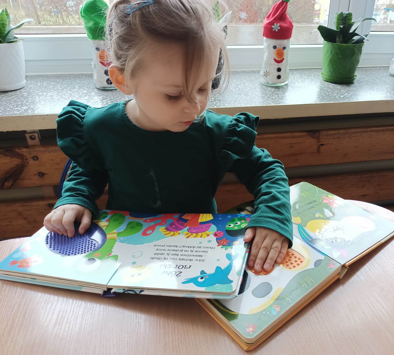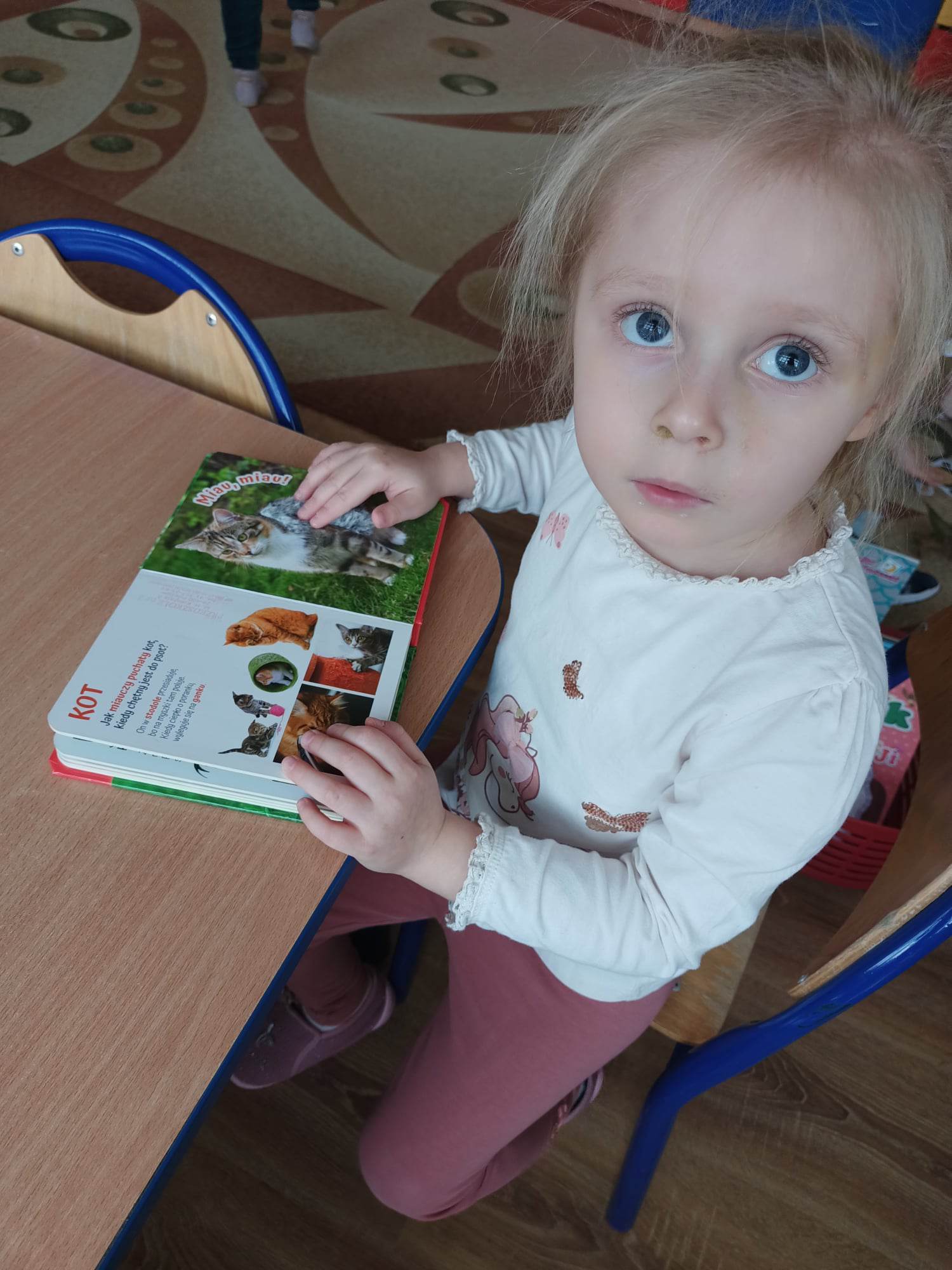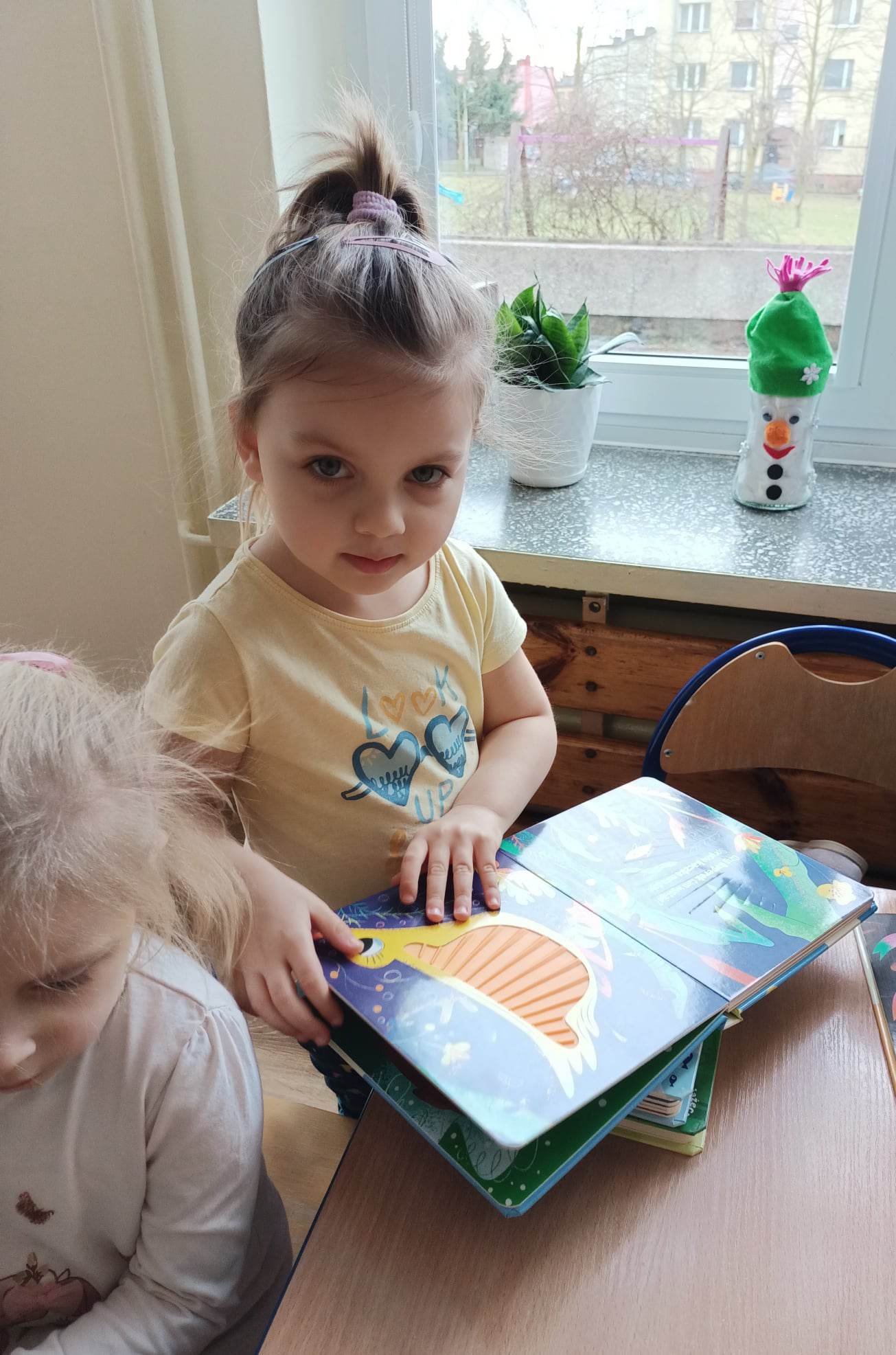 - Budzenie zaciekawienia książką przez ciekawe zabawy literacko-teatralne, piosenki, twórczość plastyczną, wyeksponowany kącik książek w sali przedszkolnej.