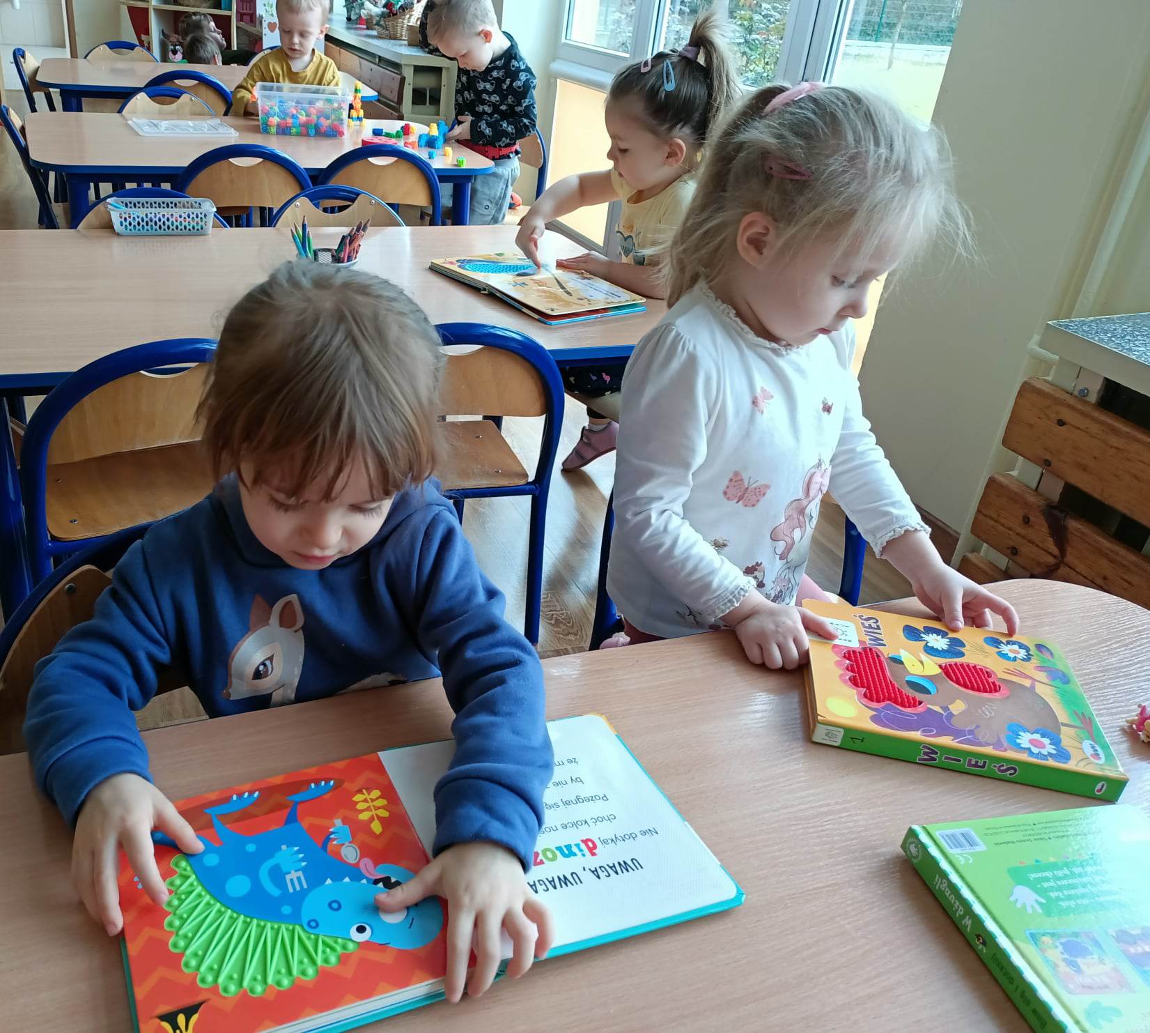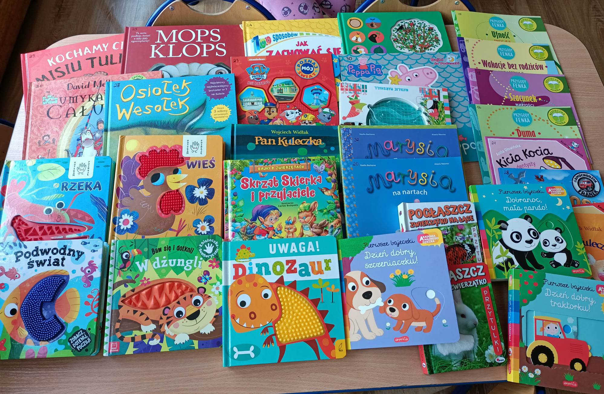 Nasze przedszkole powiększyło swój księgozbiór o nowe, ciekawe pozycje literackie dla dzieci. Książki te niosą wartościowe przekazy dla dzieci, a ich szata graficzna przyciąga spojrzenie i wyzwala ogromną ciekawość. Książki zostały wyeksponowane na półkach w kąciku książki.