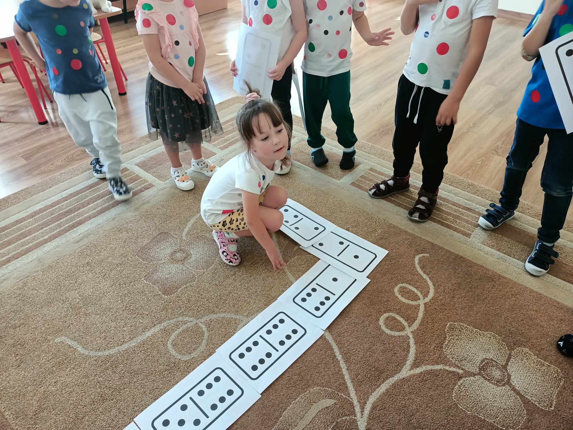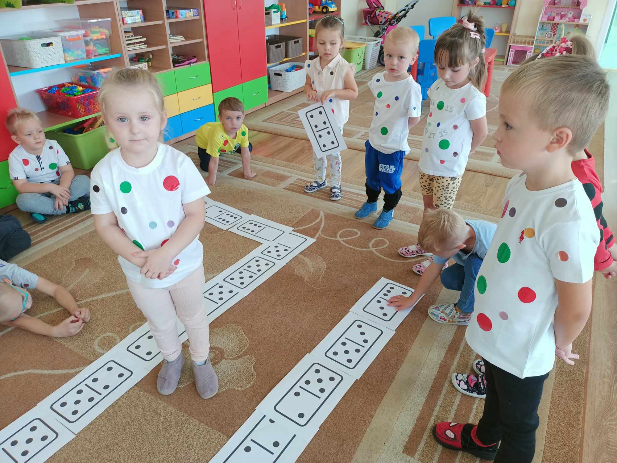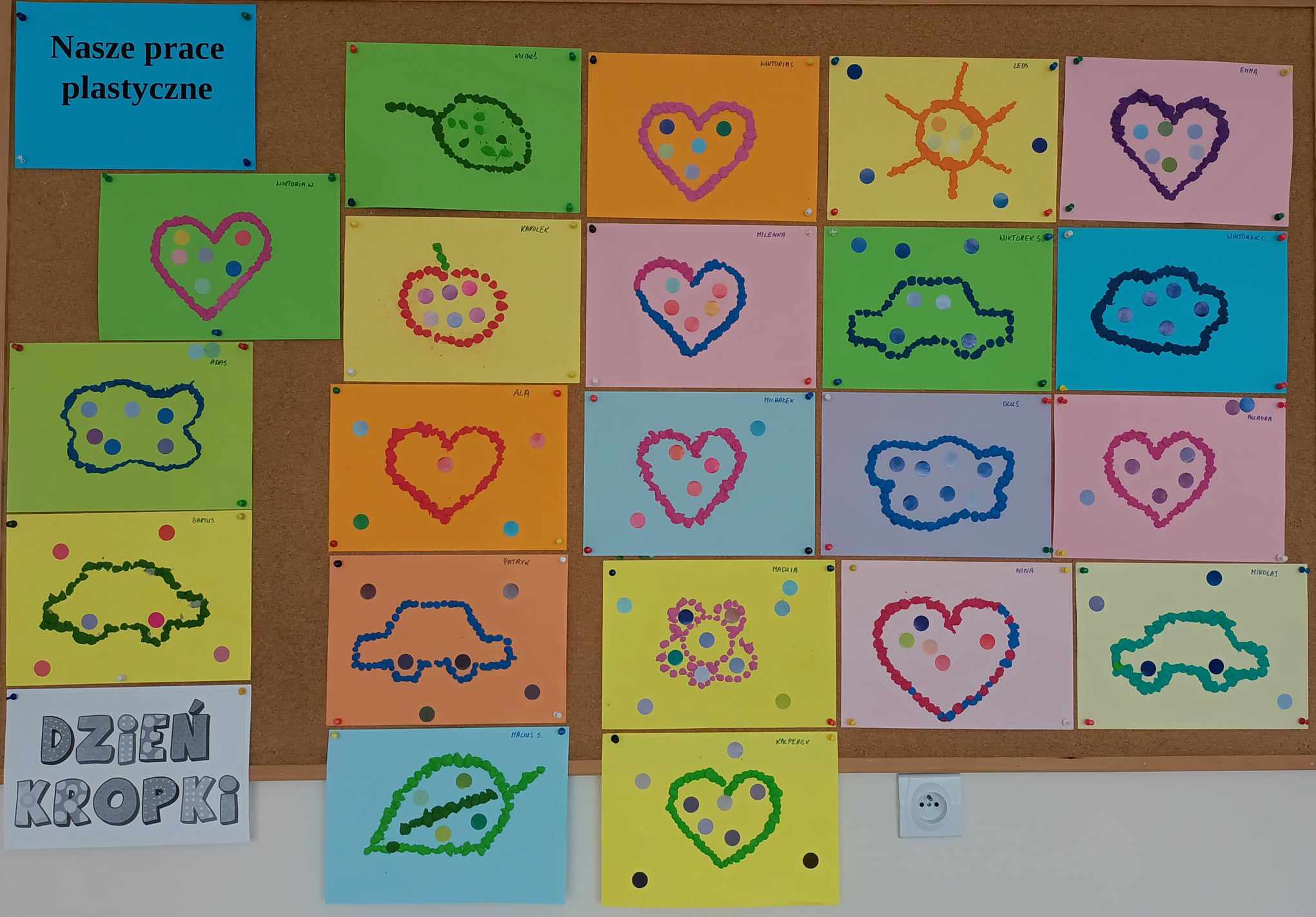 Celem Międzynarodowego Dnia Kropki jest wzbudzenie u dzieci kreatywności, pomysłowości i zachęcenie ich do tworzenia, działania. Dzień Kropki jest to dzień odwagi i zabawy. Tego dnia nasze zabawy wypełnione były kolorowymi kropkami, Dzieci dostrzegły, że świat składa się z kropek małych i dużych. Kropki gościły w zabawach ruchowych jak i matematycznych -domino dywanowe. Dzieci układały kropki na sylwetce biedronek Wykonały kompozycje z kółek różnej wielkości i koloru rozwijając przy tym swoje twórcze myślenie i kreatywność. Na zakończenie każde dziecko otrzymało order uśmiechniętej kropki oraz wykonało sobie pamiątkowe zdjęcie Tego dnia było bardzo kolorowo i wesoło.