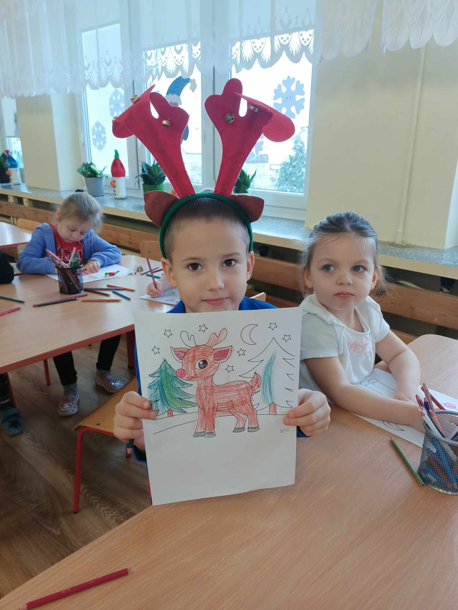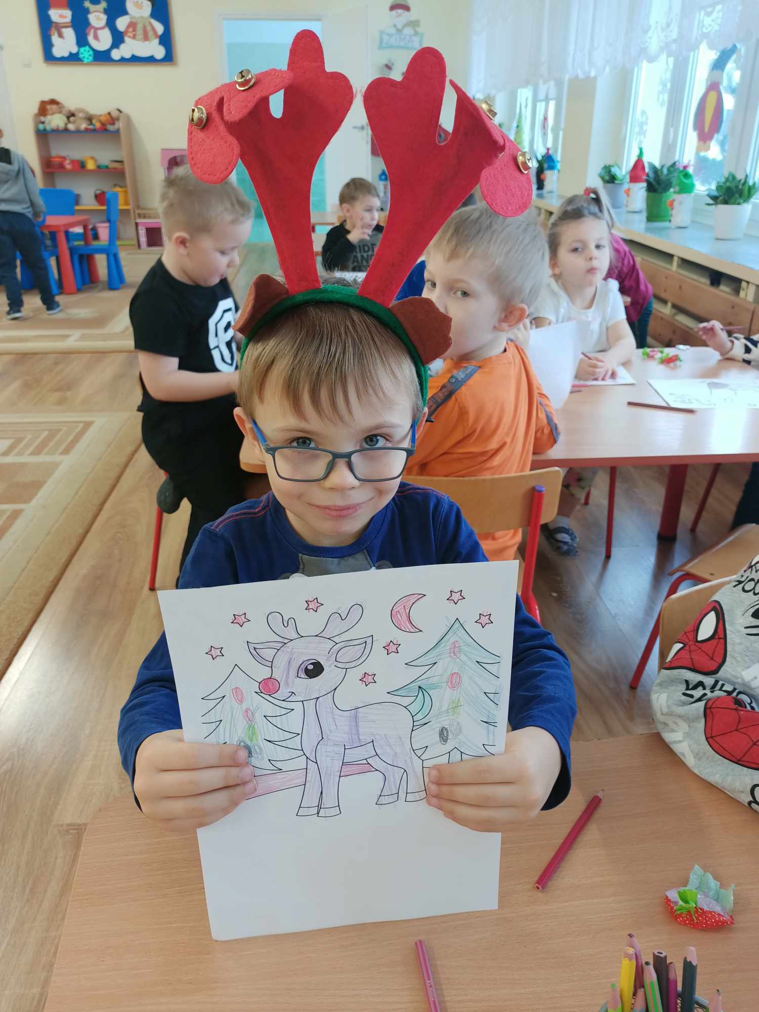 Z okazji zbliżających się Świąt Bożego Narodzenia pani Grażynka z Biblioteki Publicznej z Oddziału dla Dzieci odwiedziła naszą grupę. Przeczytała dzieciom kilka bożonarodzeniowych książek. Wśród nich znalazły się “Marysia i Boże Narodzenie”, “Opowiadania pod choinkę”, ,, Wesoły Renifer” ,, Boże Narodzenie” i inne. W trakcie czytania dzieci opowiadały o świętach w swoich domach, o prezentach, jakie chciałyby dostać, a także odpowiadały na pytania dotyczące świat Bożego Narodzenia. Nie zabrakło także zabaw ruchowych pt. ,,Pędzą Renifery” , ,, Zimowa poleczka”, świątecznych kolorowanek oraz słodkiego poczęstunku.