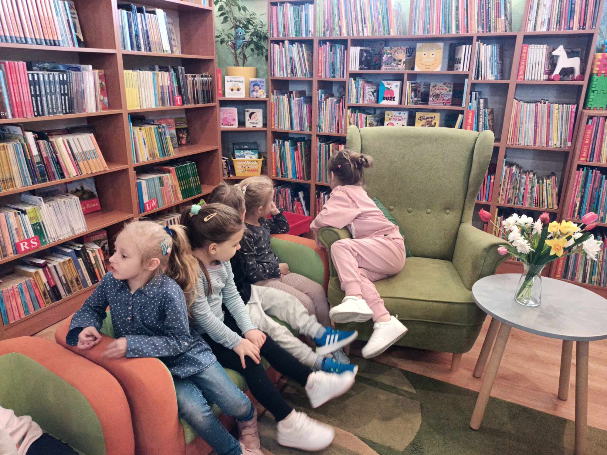 Spotkanie odbywało się w miłej, pełnej uśmiechów i wrażeń atmosferze. Dla wielu przedszkolaków, była to pierwsza wizyta w bibliotece, ale mamy nadzieję, że nie ostatnia.