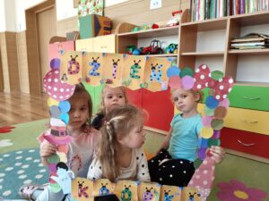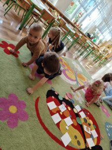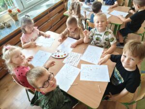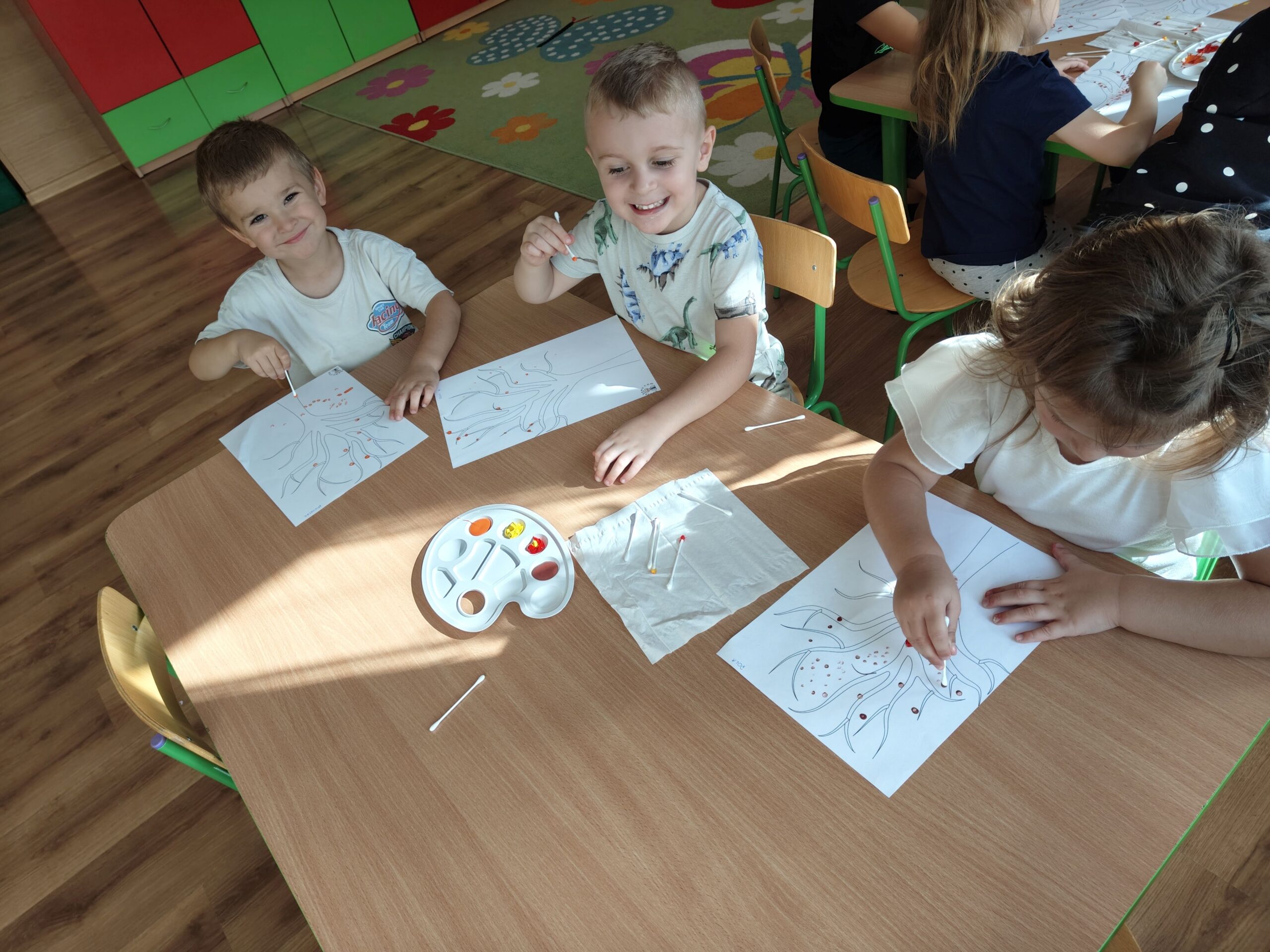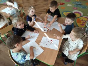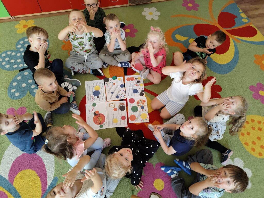 Dzień Kropki to dzień odwagi, zabawy, budzenia kreatywności i pomysłowości. W tym dniu zabawy u Motylków wypełnione były kolorowymi kropkami. Na zajęciach przedszkolaki uważnie wysłuchały opowiadania jak zwyczajna kropka zmieniała świat małej dziewczynki. Historia Vashti uświadomiła dzieciom, że każdy ma jakieś ukryte talenty, zdolności. Podczas zajęć Motylki segregowały kropki ze względu na kolor, tworzyły kropkowe prace plastyczne oraz bawiły się przy piosence o kropce.