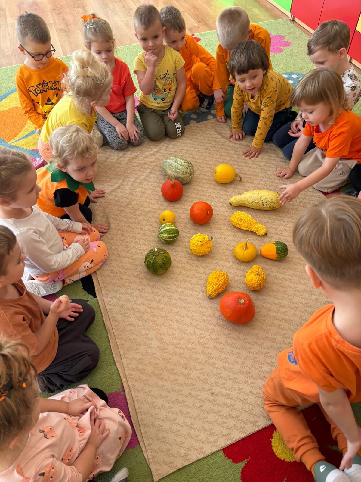 Motylki świętowały Dzień Dyni, poznając to niezwykłe warzywo na wiele sposobów. Były zabawy sensoryczne z dynioliną, muzyczne zabawy z dynią, a także matematyka dyniowa. ![]()
