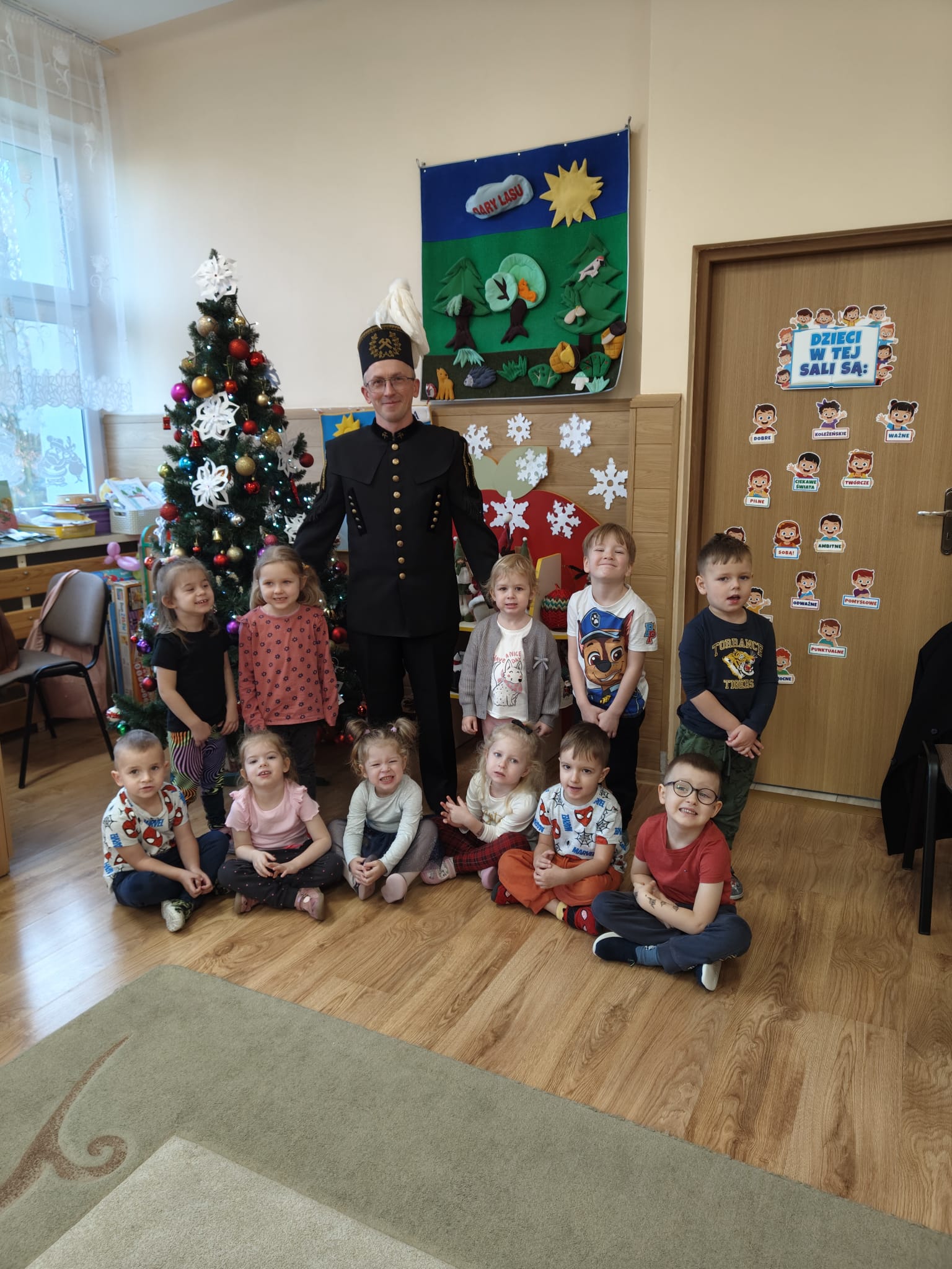 4 grudnia obchodzimy Dzień Górnika, znany również jako Barbórka- jedno z najważniejszych świąt zawodowych w Polsce. ” Motylki’ uczestniczyły w spotkaniu z górnikiem- Panem Dominikiem Wójcikem. Nasz gość zawitał do nas, aby poszerzyć wiadomości dzieci na temat wykonywanej przez niego ciężkiej i niebezpiecznej pracy. Przedszkolaki poznały tradycyjny mundur górnika, dowiedziały się co oznaczają kolory piór znajdujące się na jego czapce oraz jakie są barwy górnicze. Wysłuchały również ciekawostek na temat „Barbórki” oraz dowiedziały się kto jest patronem górników.