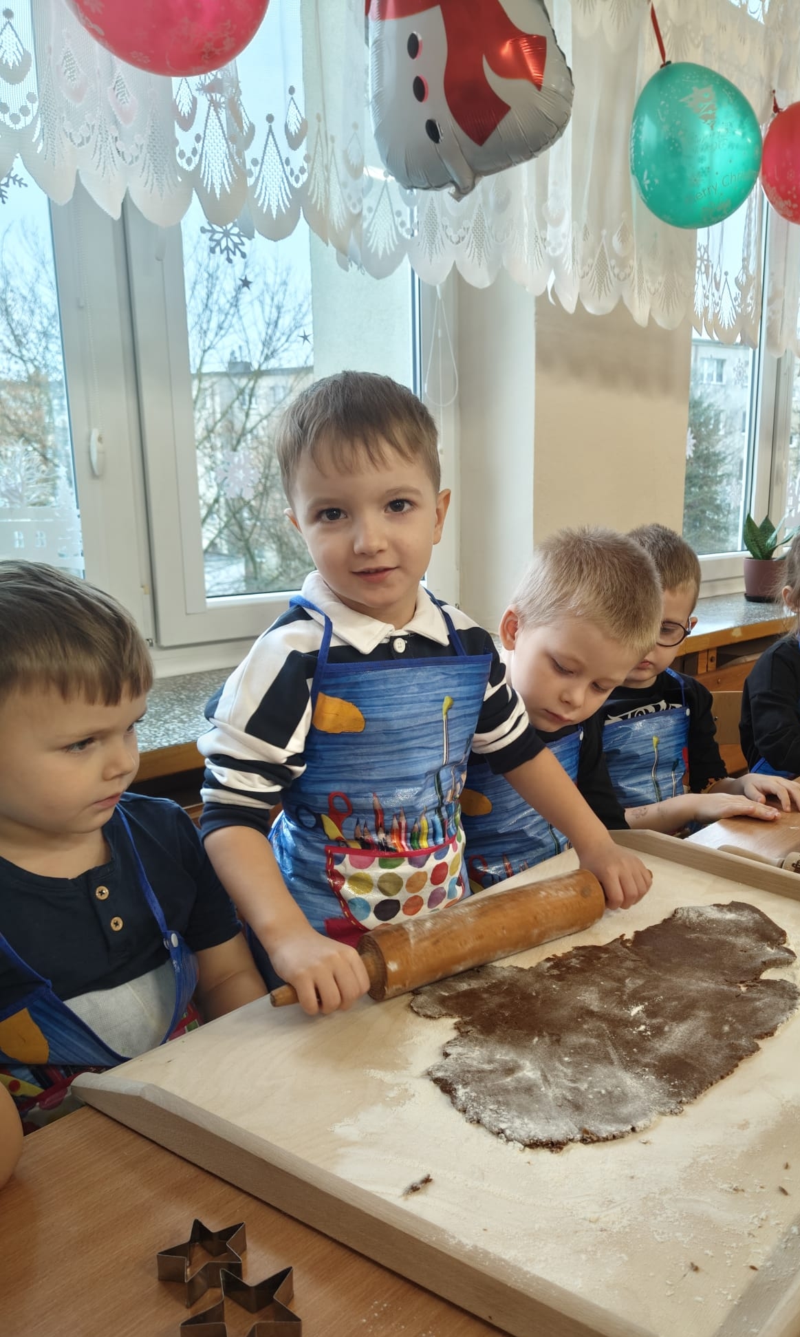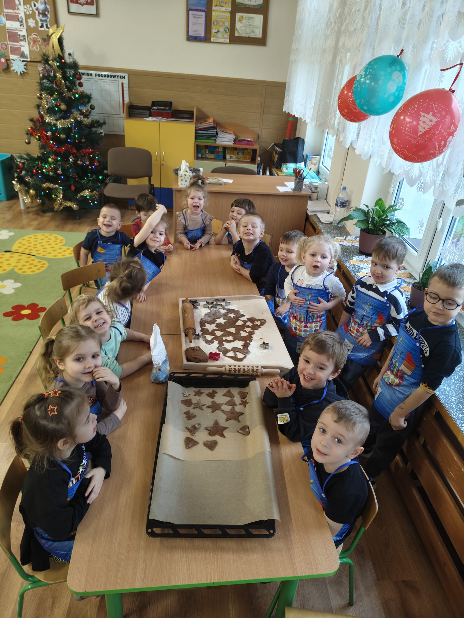 W grupie „Motylki” odbyło się wyjątkowe, pełne radości i ciepłej atmosfery wspólne pieczenie i ozdabianie pierników. Dzieci z ogromnym zaangażowaniem wałkowały ciasto i wykrawały najróżniejsze świąteczne kształty, a w całym przedszkolu unosił się cudowny zapach korzennych przypraw. gdy pierniczki były już gotowe przedszkolaki przystąpiły do ich dekorowania lukrowymi pisakami i barwnymi posypkami.