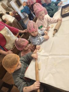 Nie zabrakło także części praktycznej – przedszkolaki własnoręcznie wypiekły podpłomyki 👩🍳👨🍳🔥