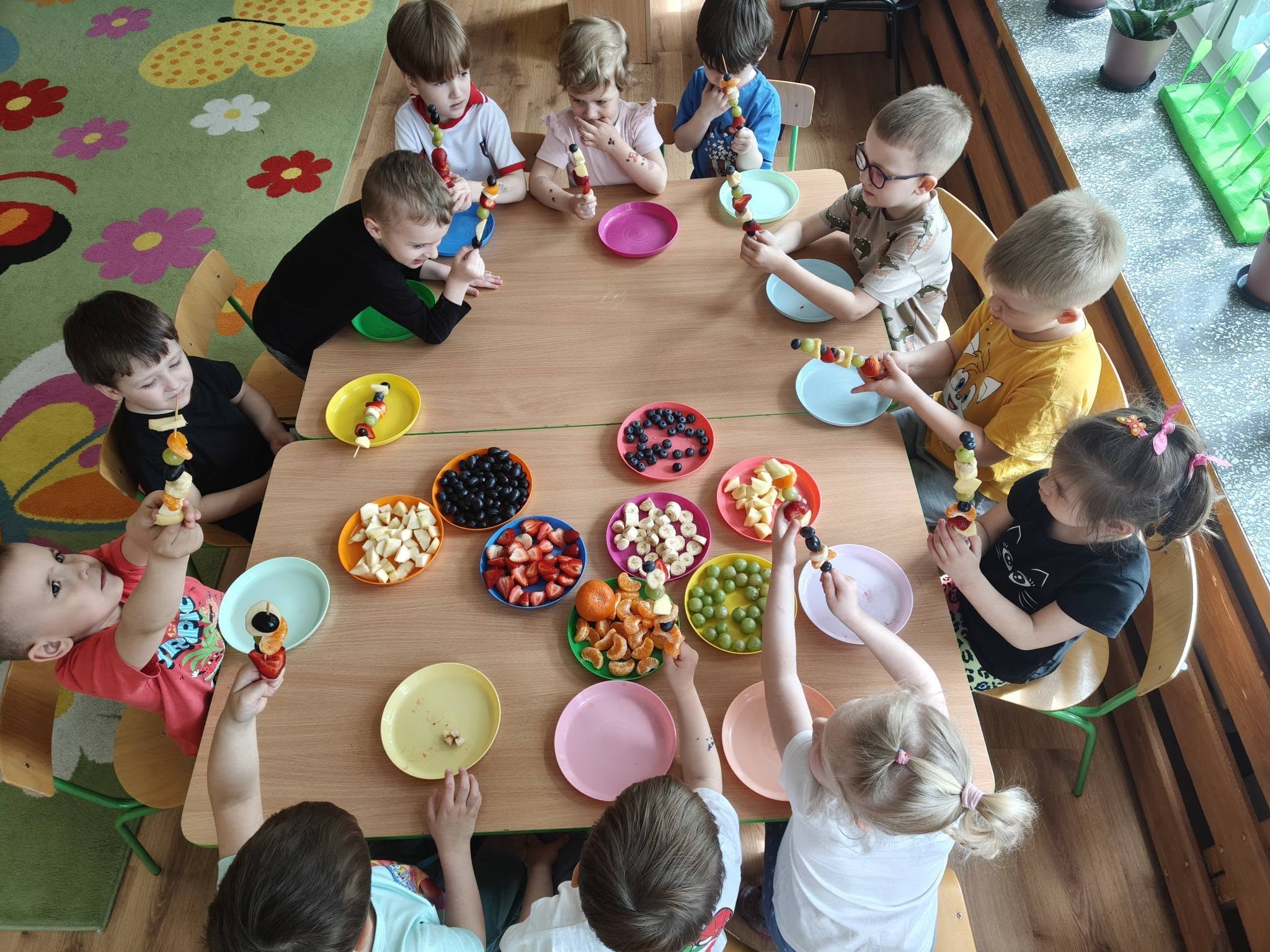 *przygotowały owocowe szaszłyki 🍓🍍🍇
