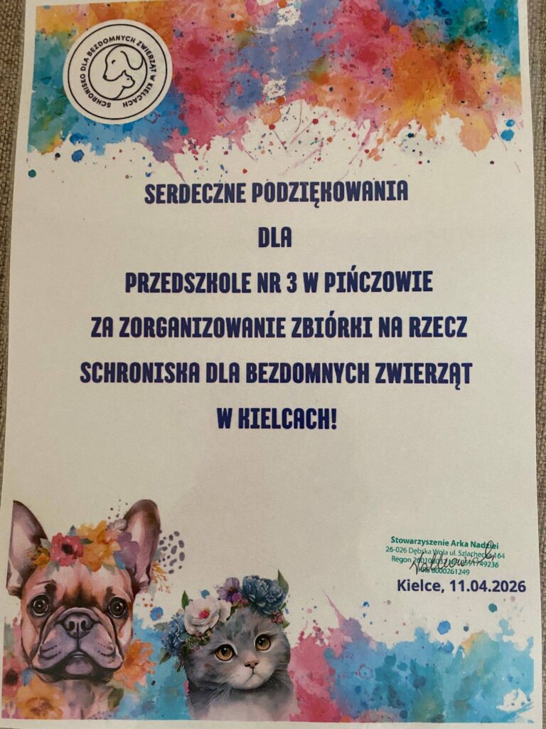 Nasze przedszkolaki mają wielkie serca! ❤️🐶-zbiórka charytatywna dla schroniska dla bezdomnych zwierząt w Kielcach